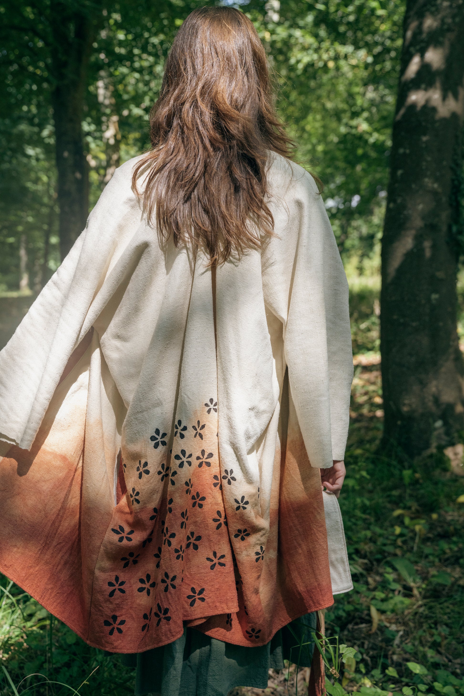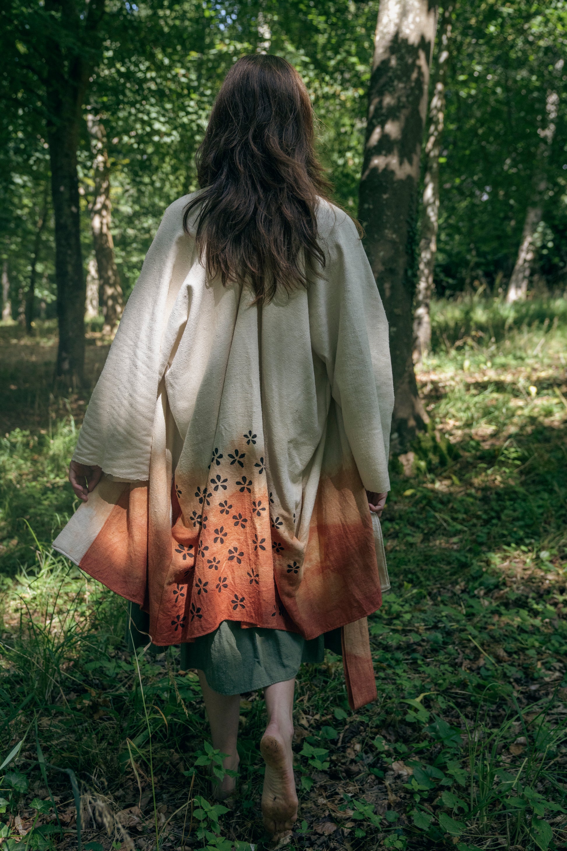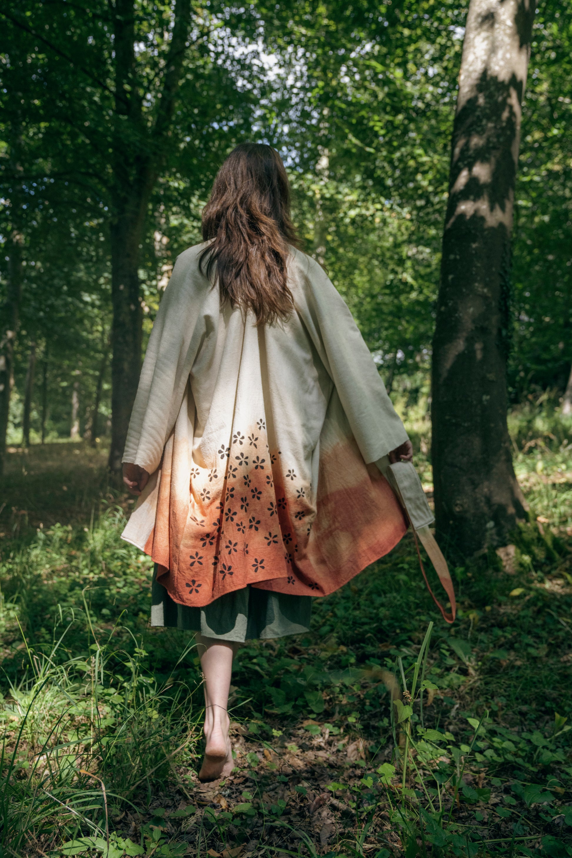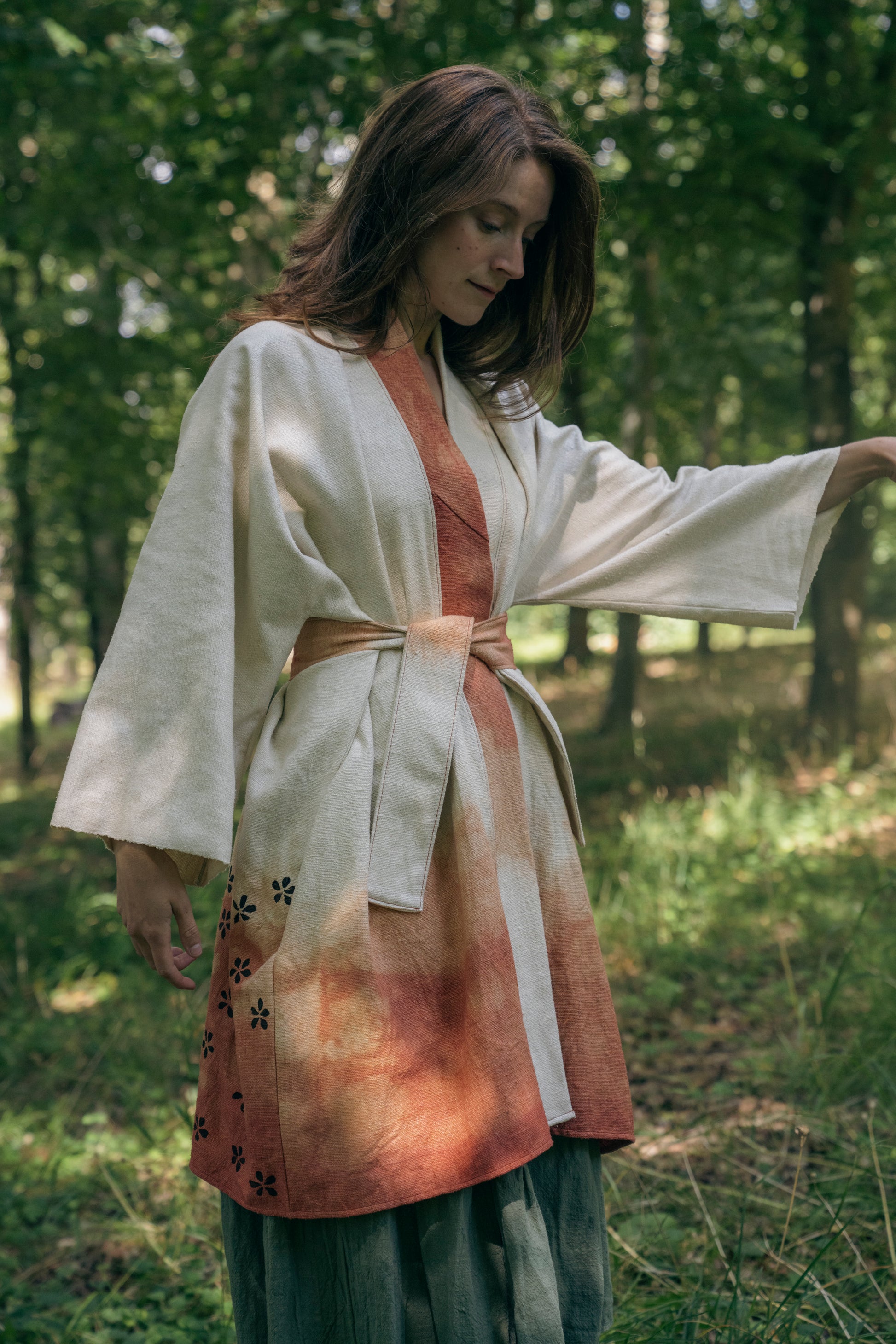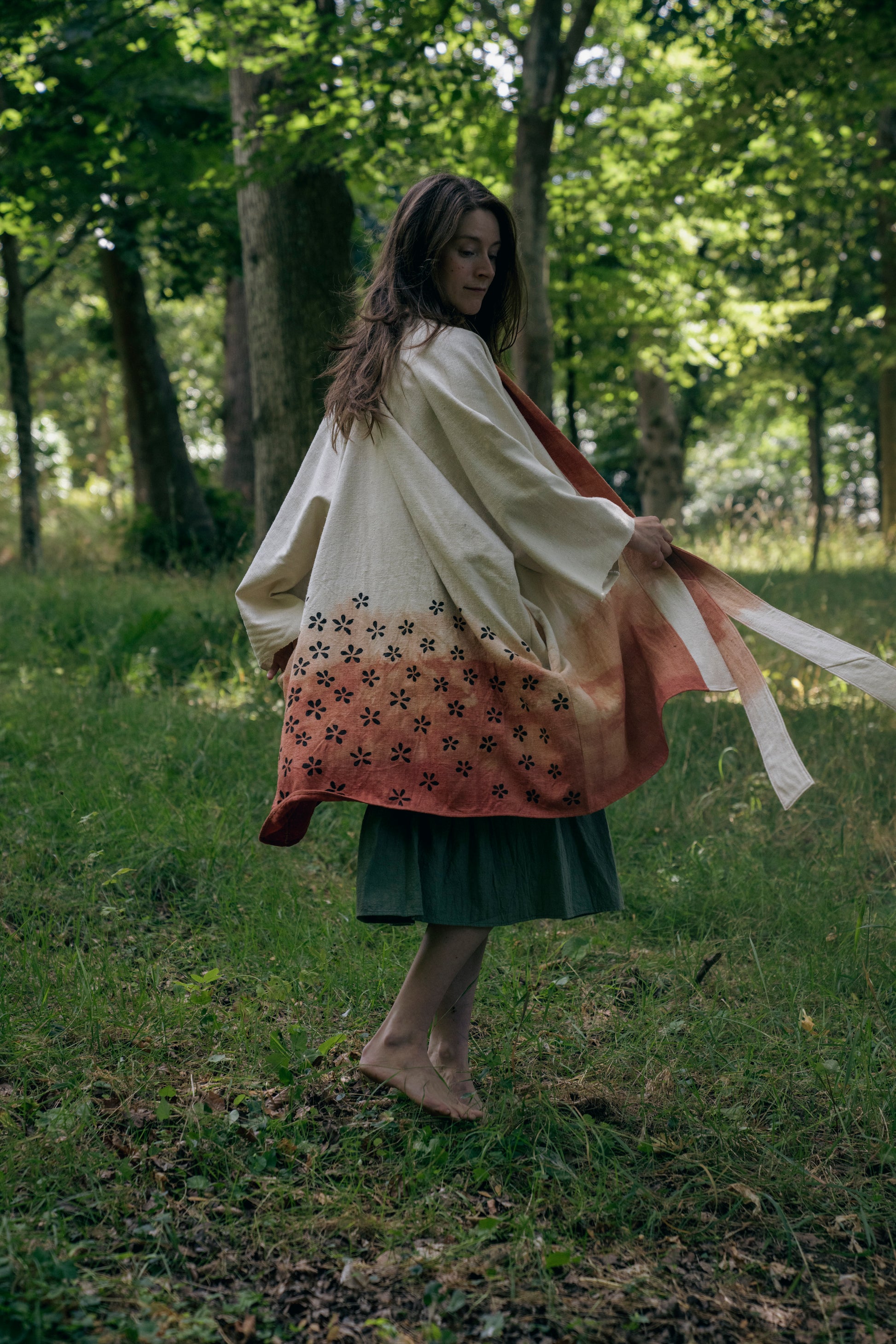 This robe is made from vintage Matka silk - a non-violent method of producing silk that does not harm the precious silk moths that produce it. This method is used by only two farms in the whole world. Making it a very rare and special material indeed (although I wish all silk was produced this way!).