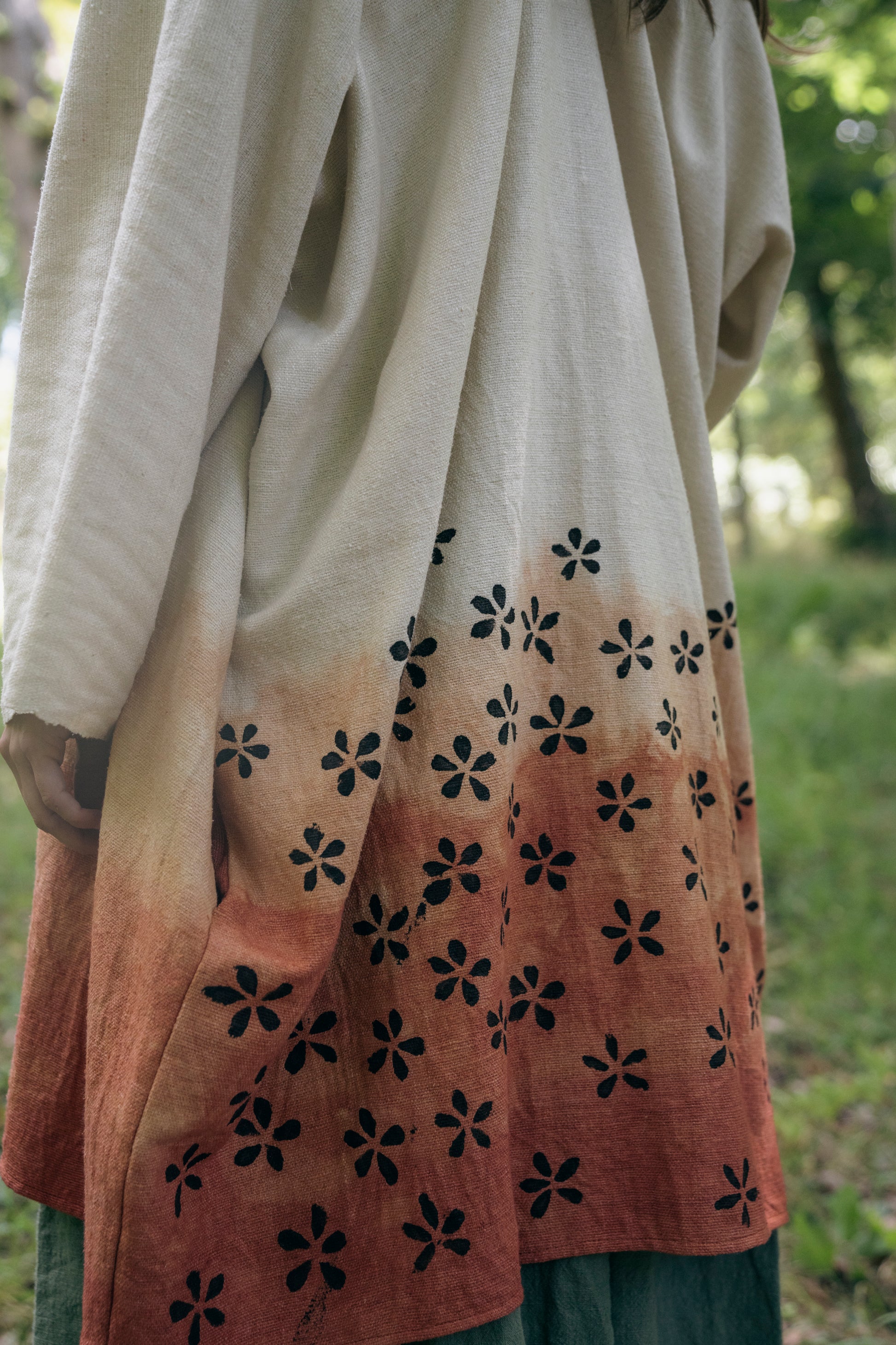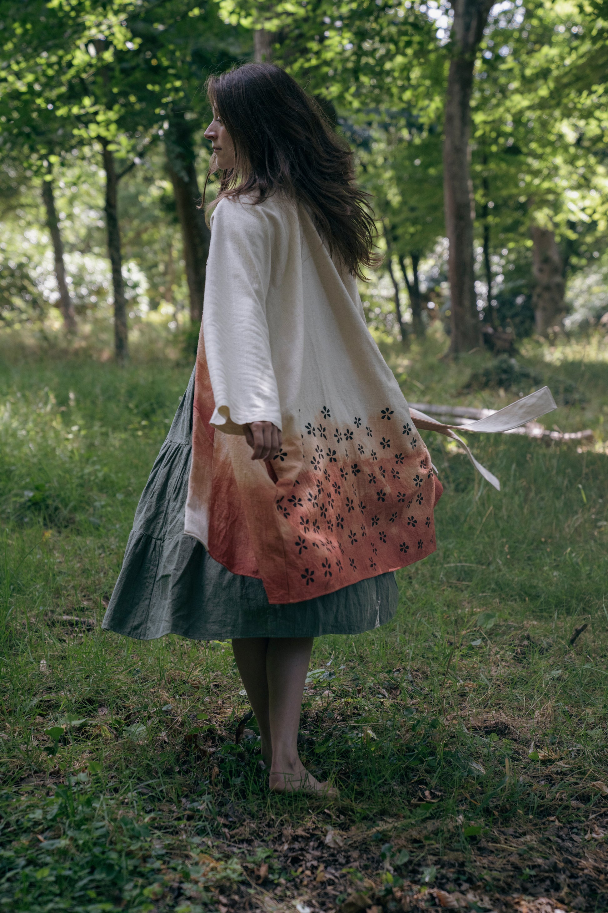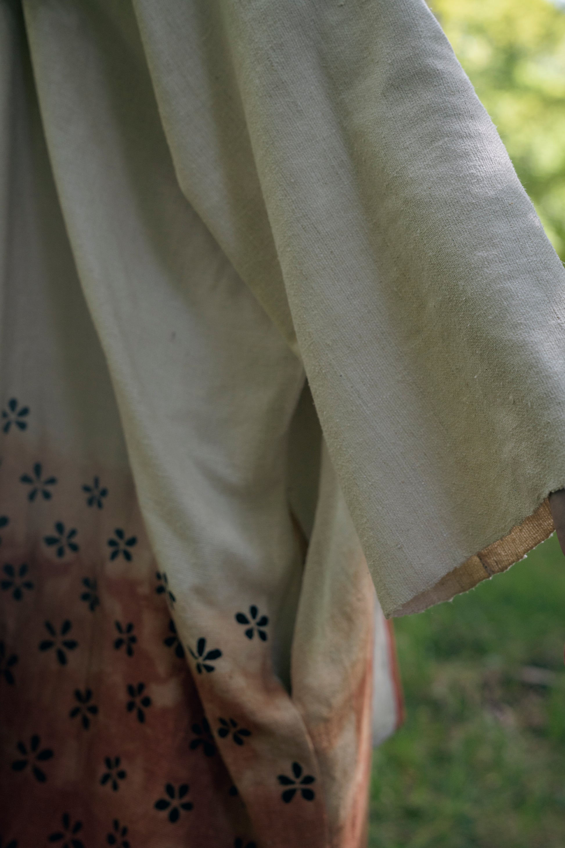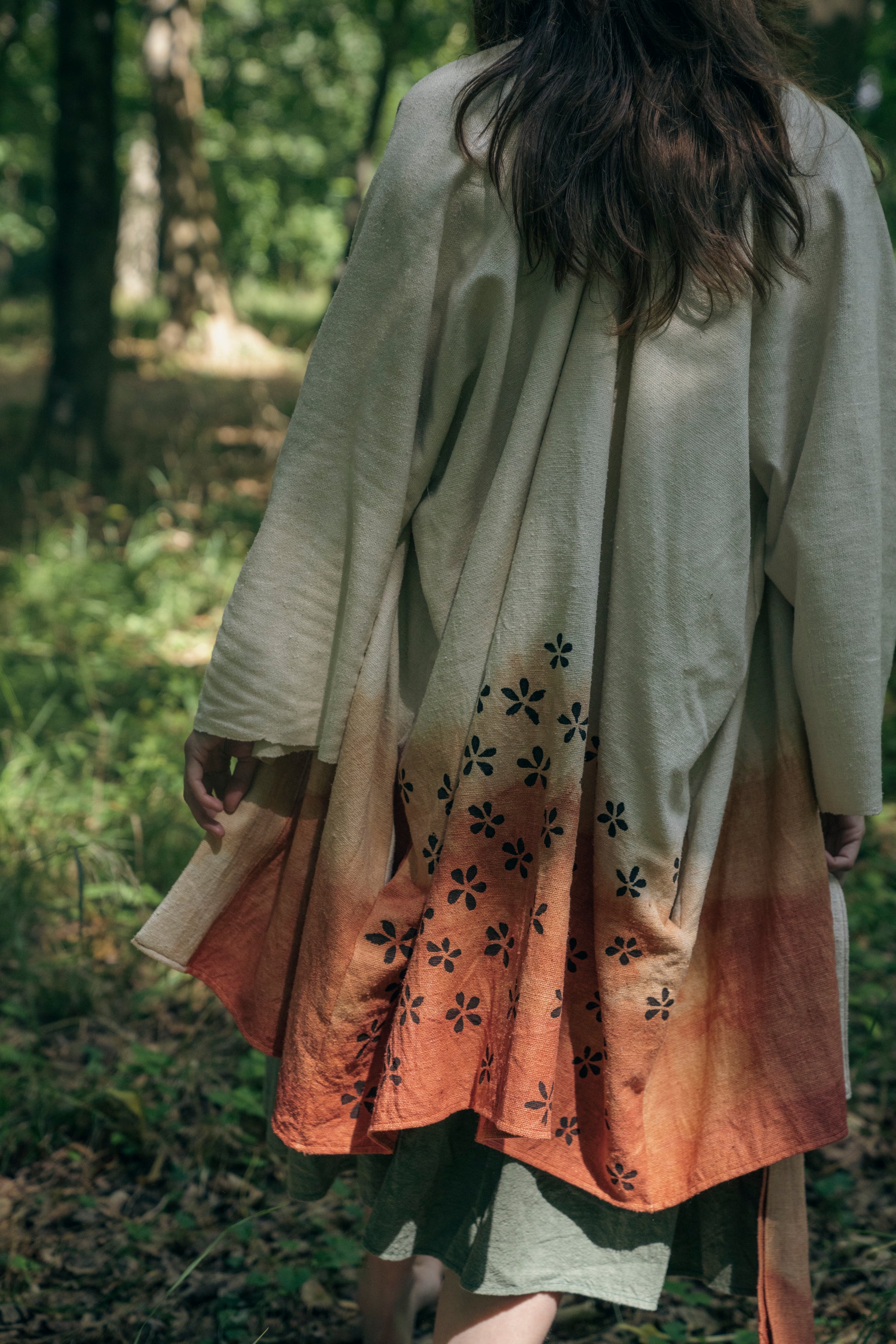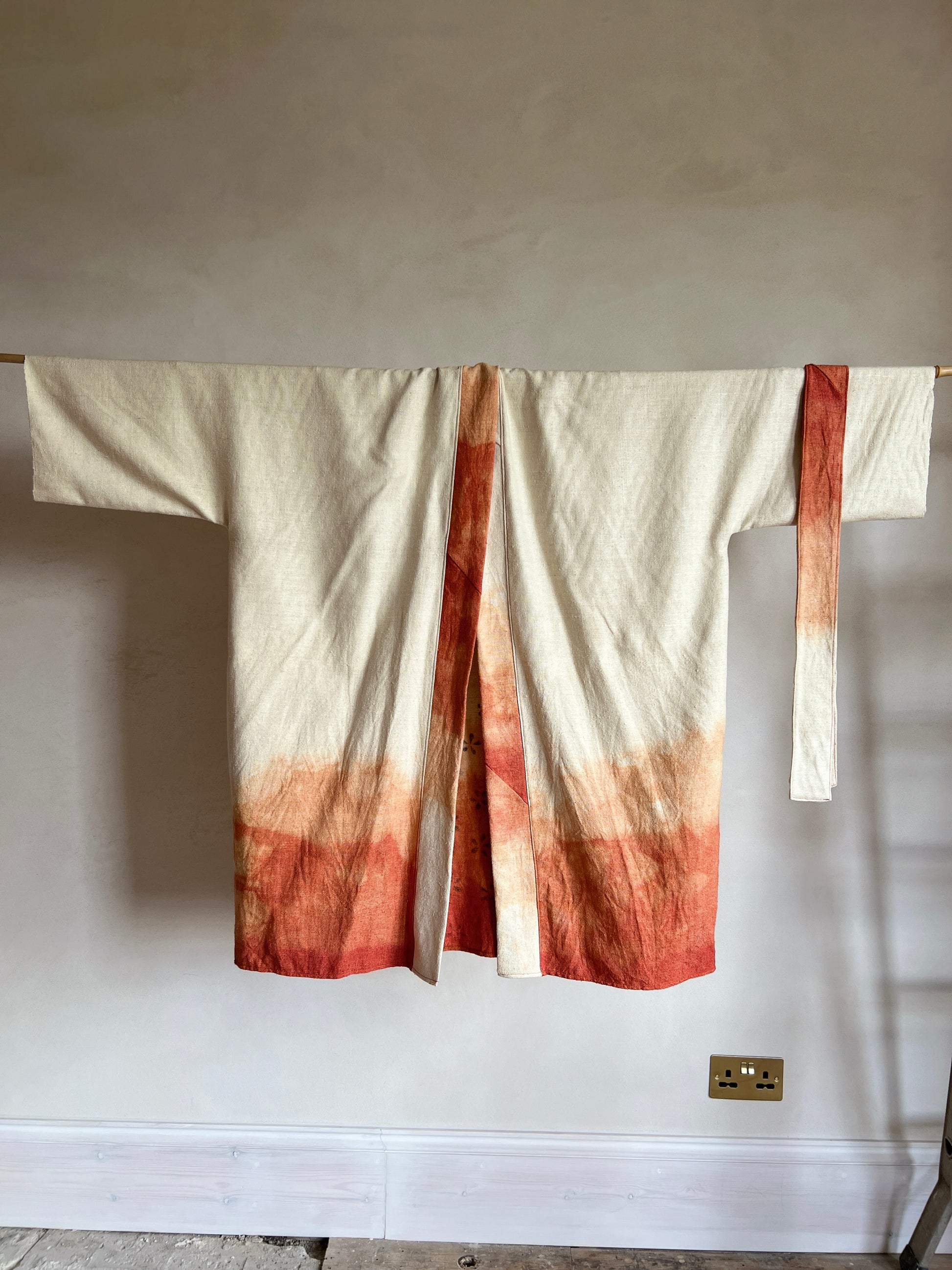 This robe is made from vintage Matka silk - a non-violent method of producing silk that does not harm the precious silk moths that produce it. This method is used by only two farms in the whole world. Making it a very rare and special material indeed (although I wish all silk was produced this way!).