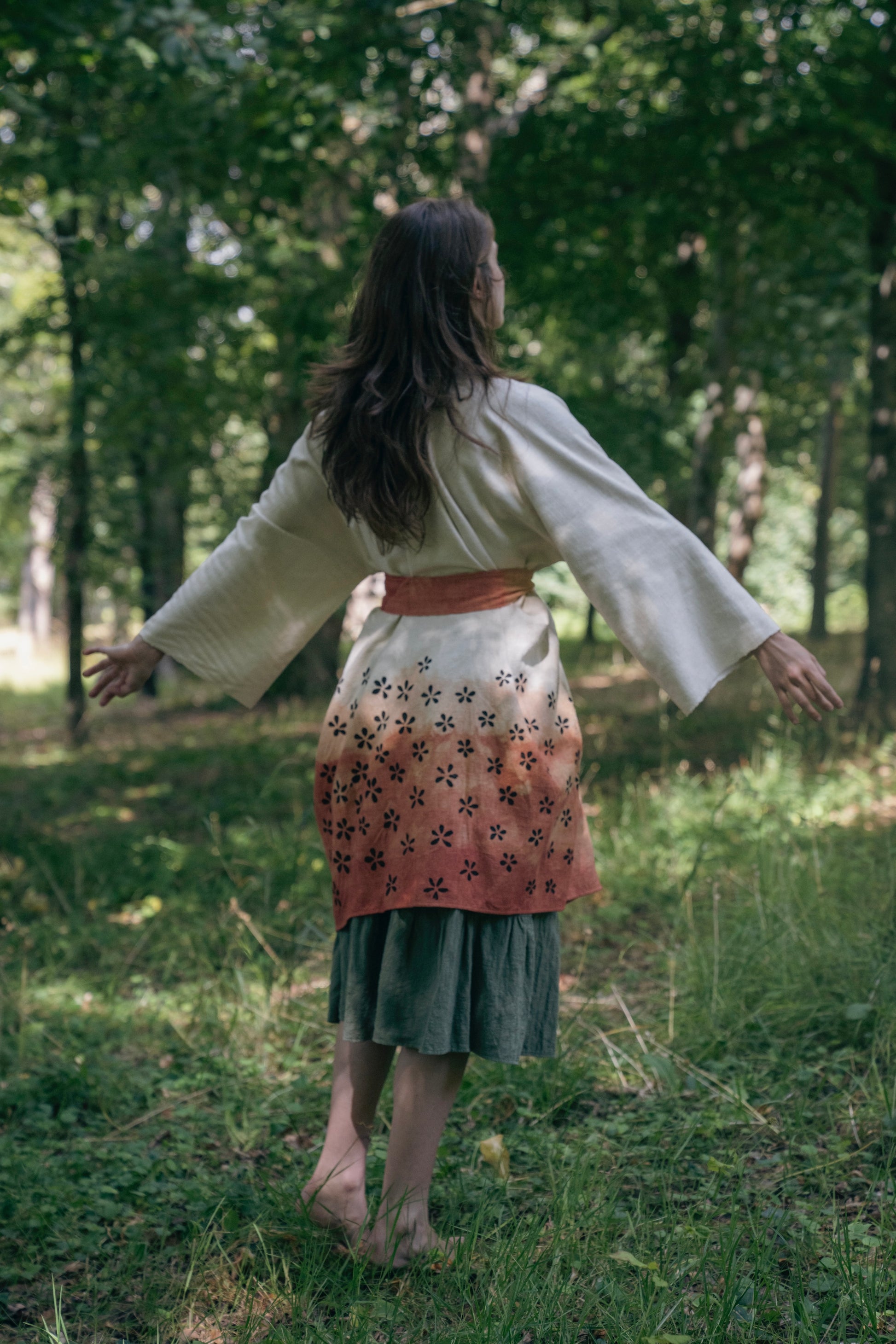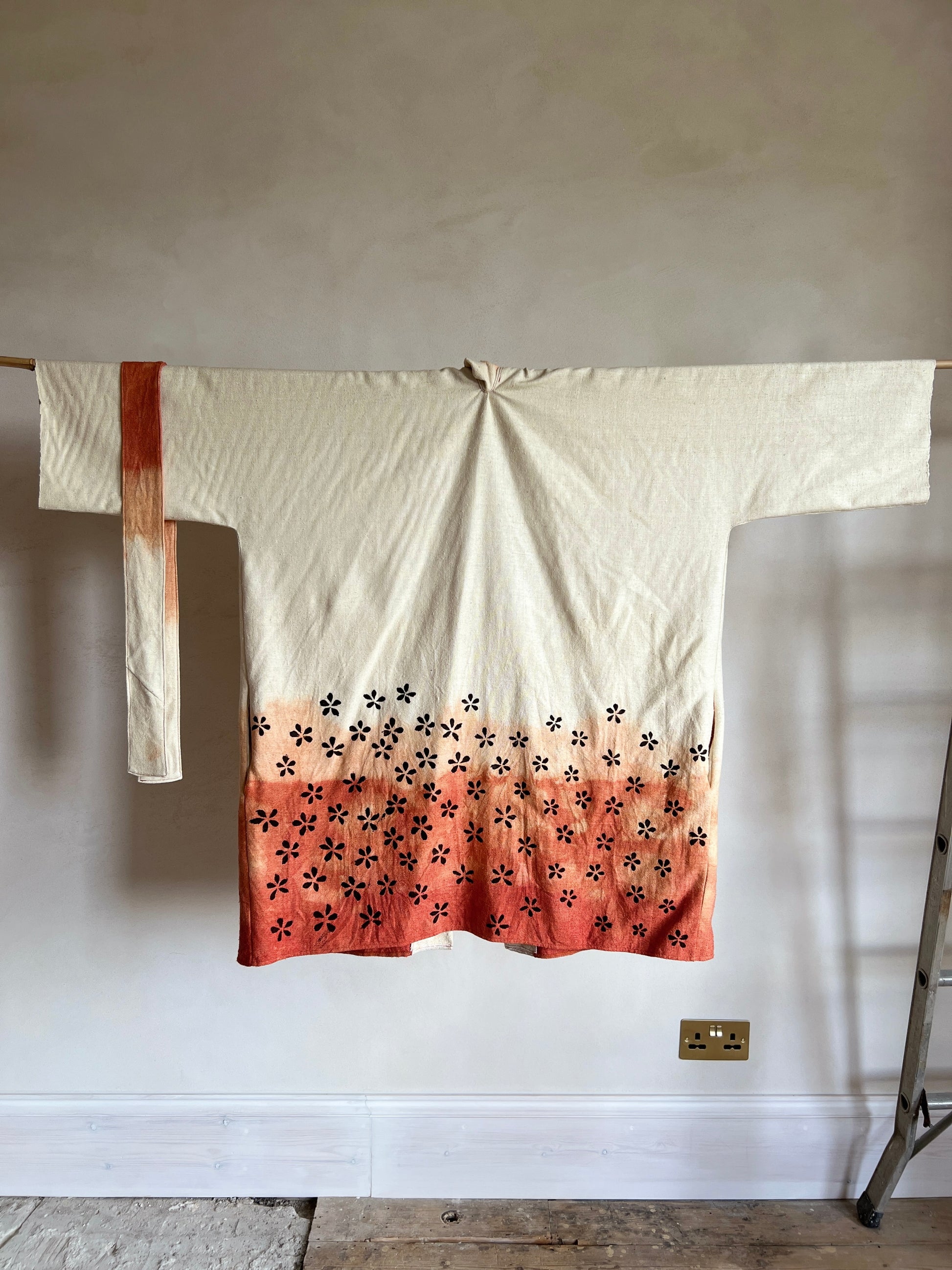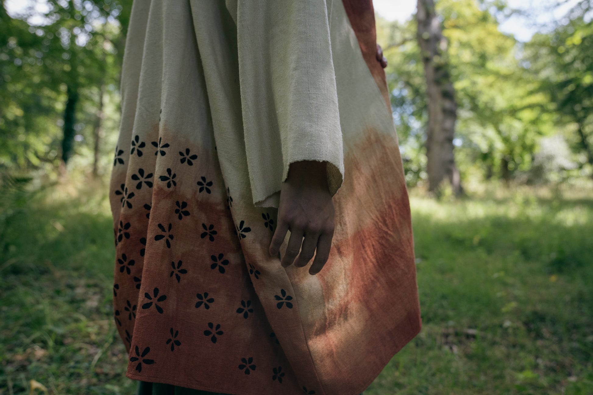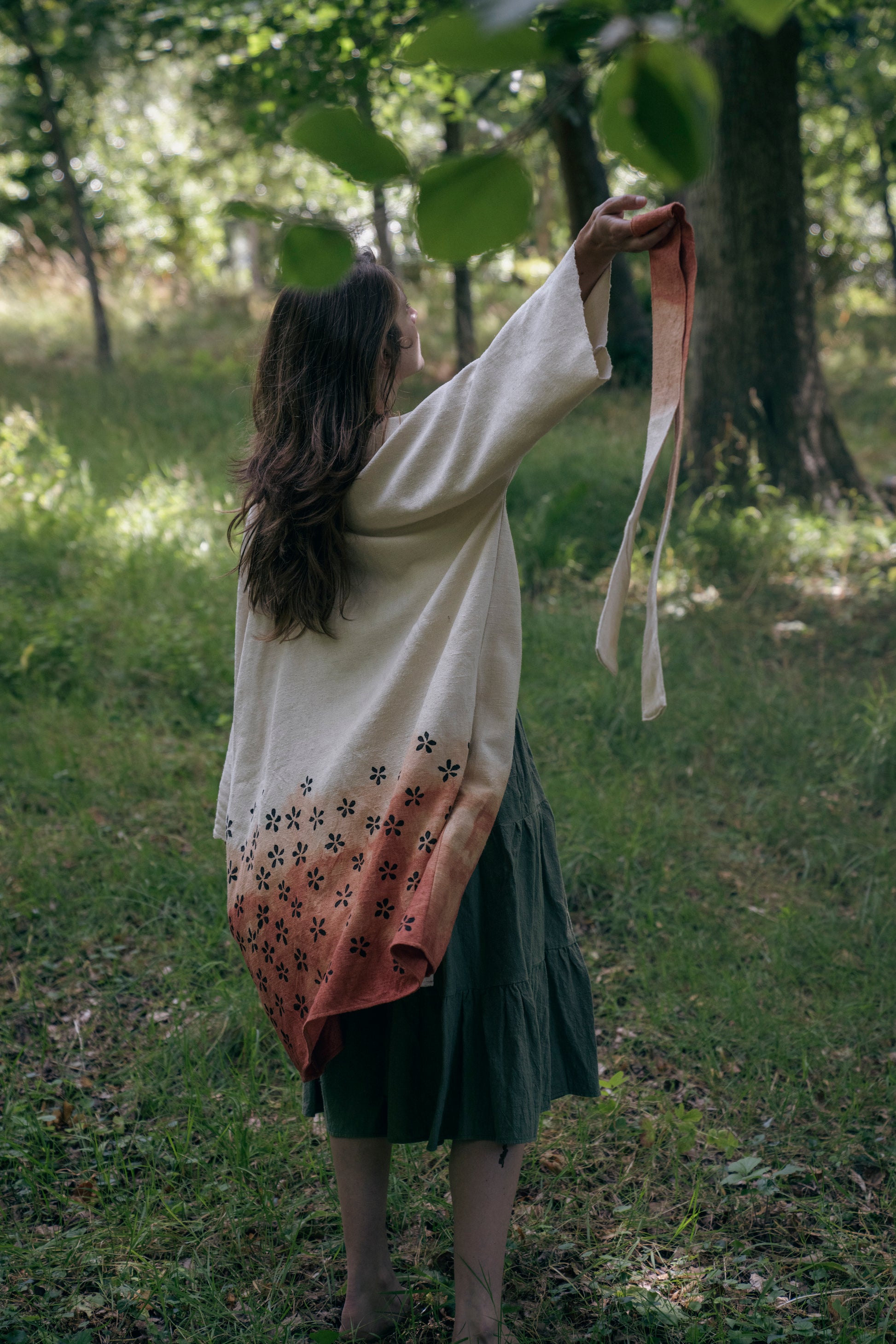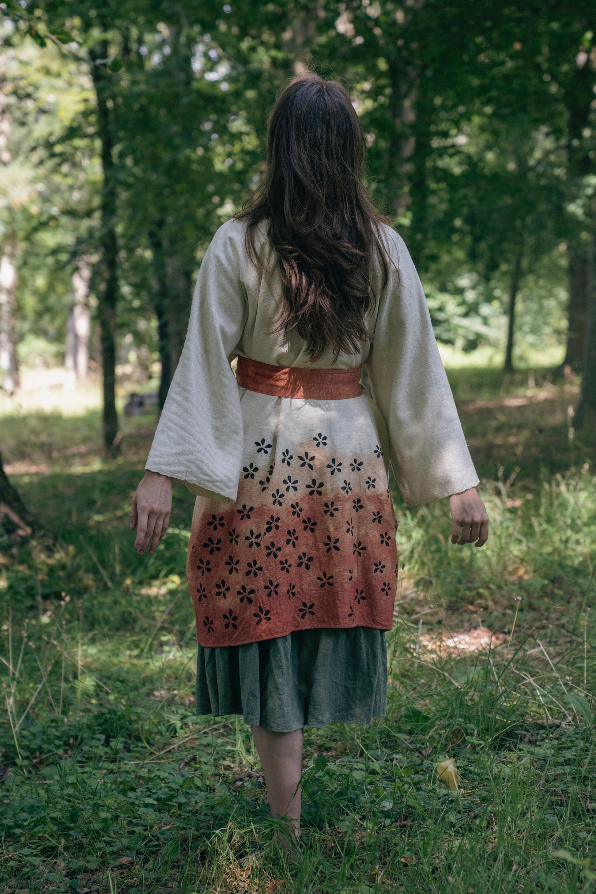 This robe is made from vintage Matka silk - a non-violent method of producing silk that does not harm the precious silk moths that produce it. This method is used by only two farms in the whole world. Making it a very rare and special material indeed (although I wish all silk was produced this way!).