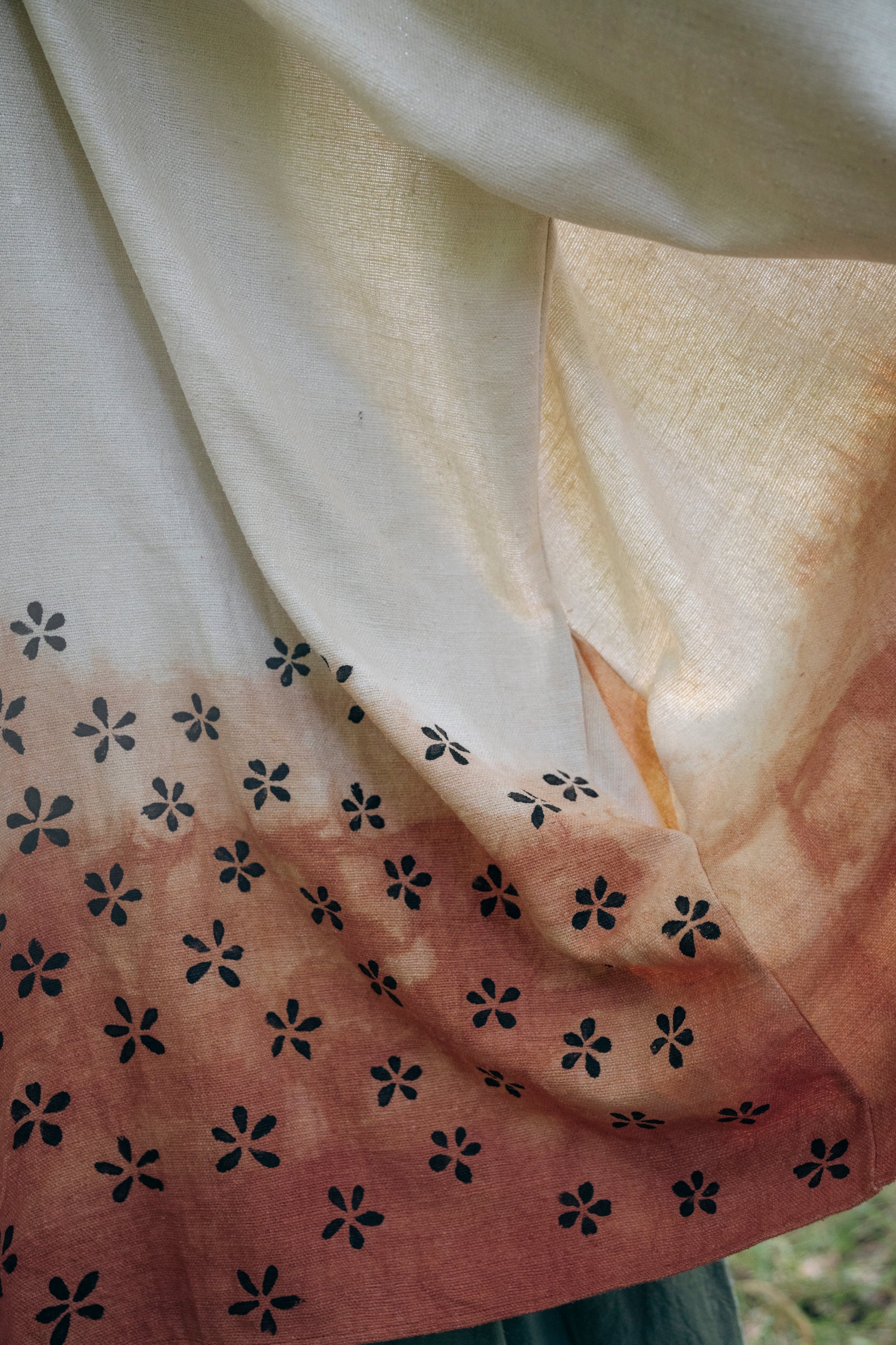 Instead of boiling and killing the innocent moths in their cocoon stage to obtain the silk fibres which is how mainstream silk is produced, they are left to live out their full life cycle and the discarded waste product from their abandoned cocoons is then turned into this sumptuous fabric here. It has a beautiful almost linen-like quality to it, quite different from the harmful regular method, and feels lovely and drapey on the skin.