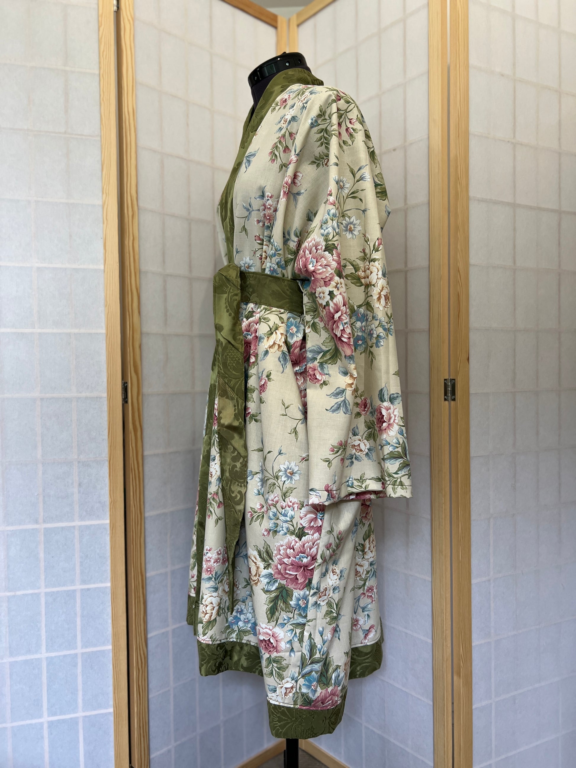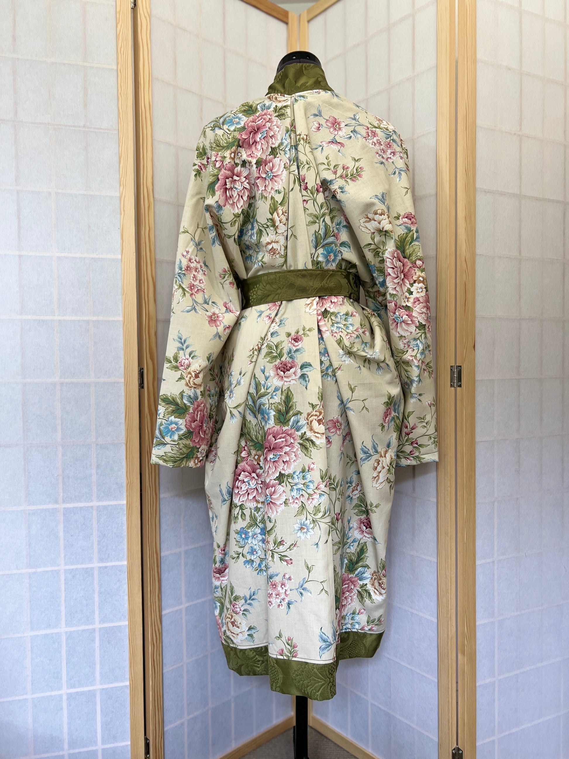 ILH Robe Pink & Green Floral with Green Belt