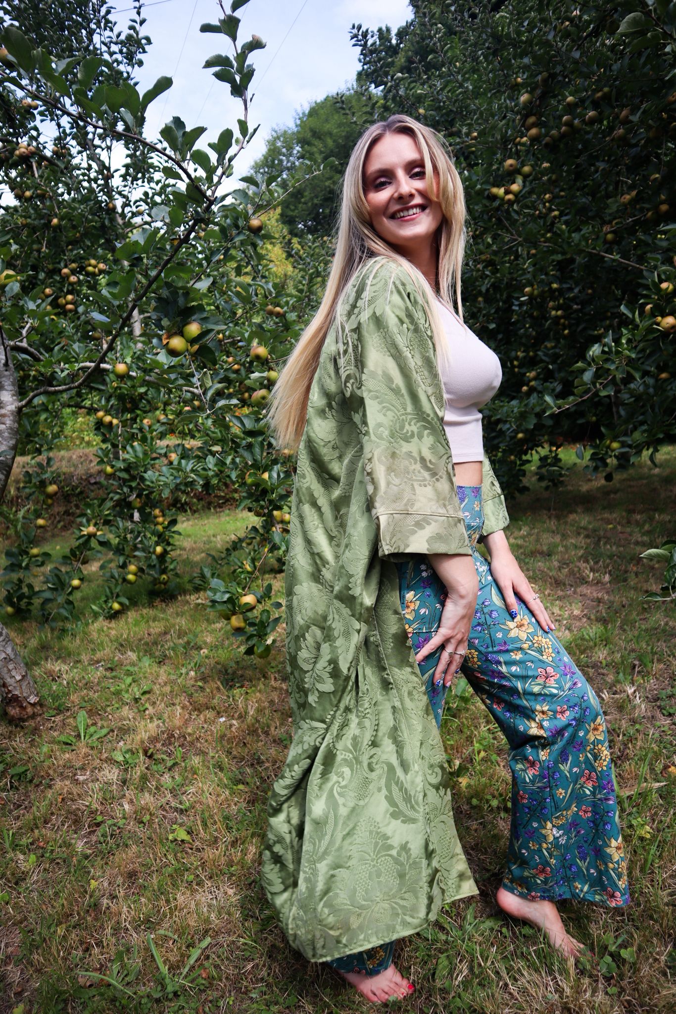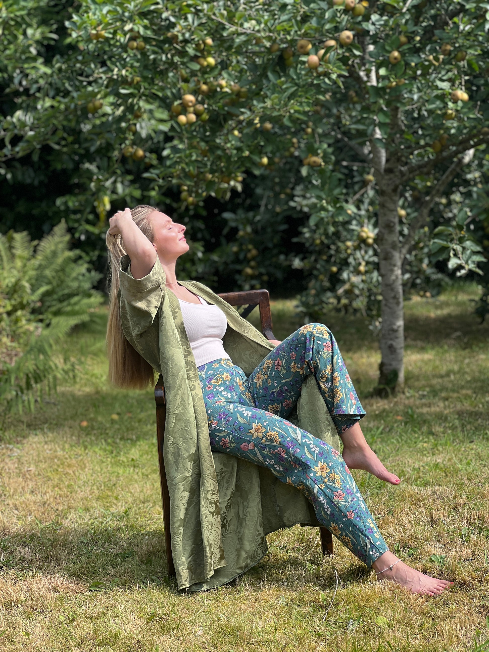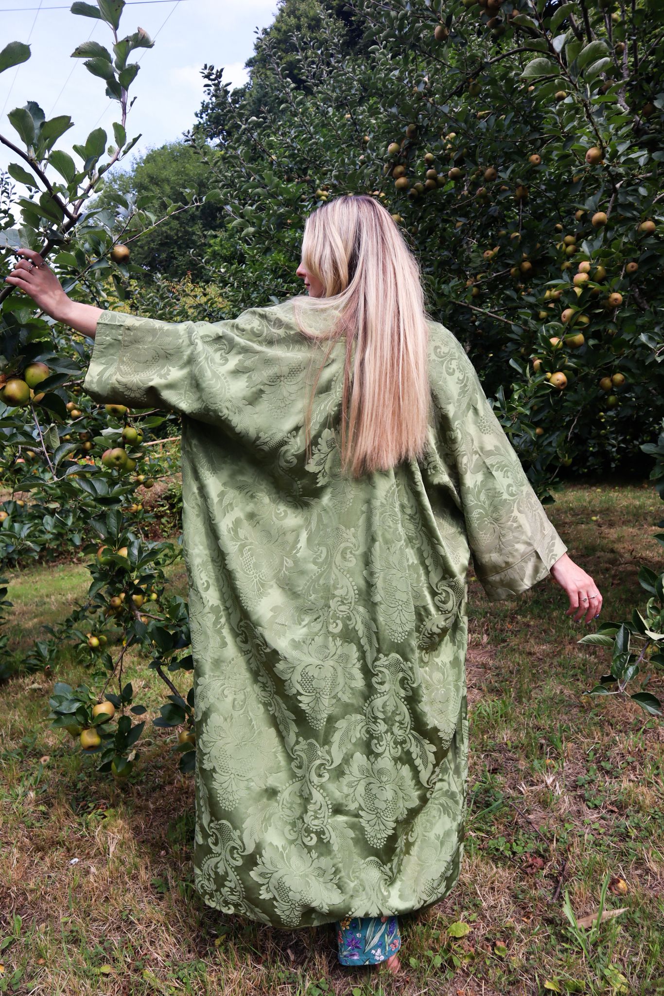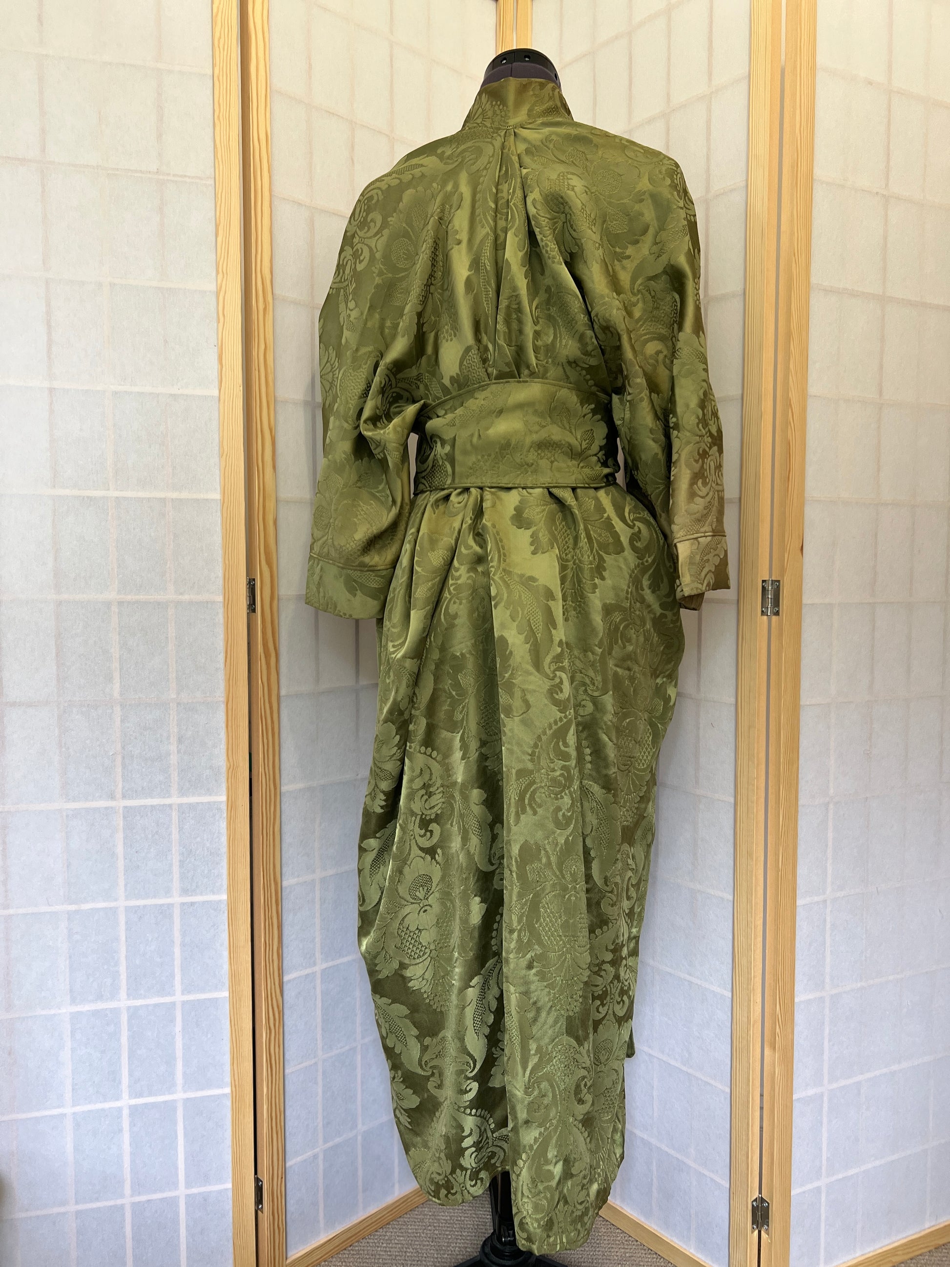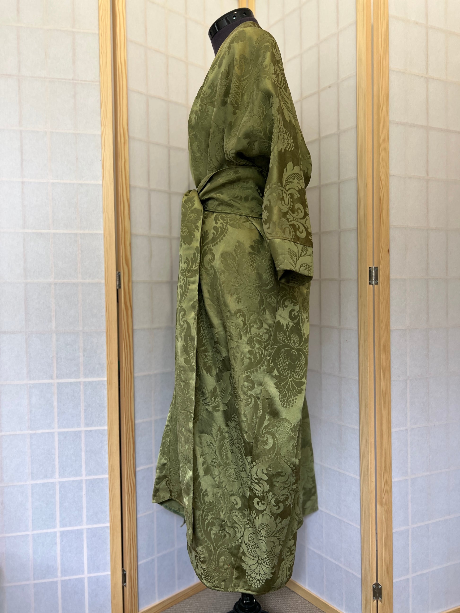 Made from a stunning vintage olive green satin my sister-in-law found in a vintage store, this robe is perfect for lounging around your house or wearing with a slip dress going out.