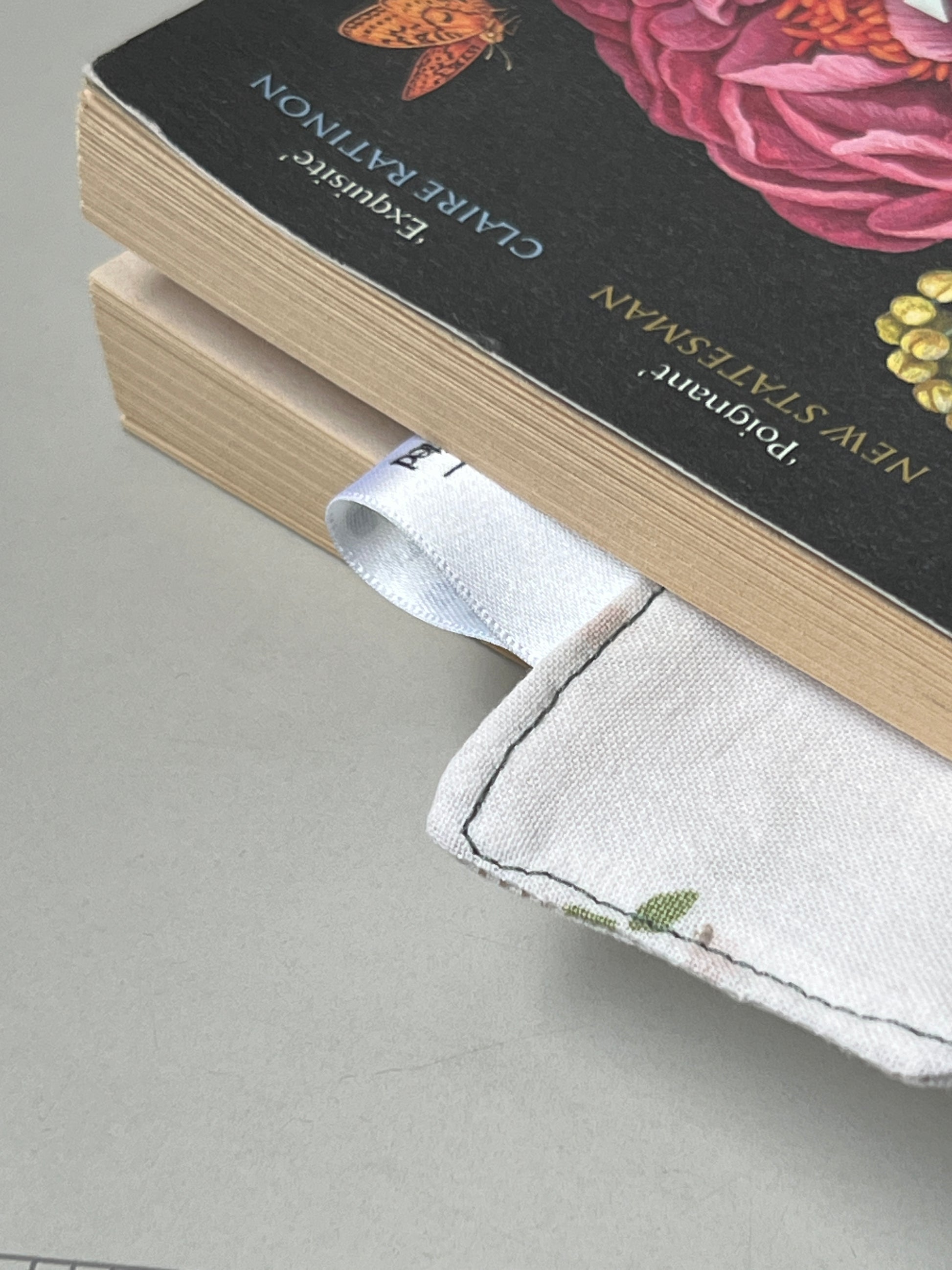 Made from the little scraps in my fabric stash! Fits perfectly into most book sizes.
